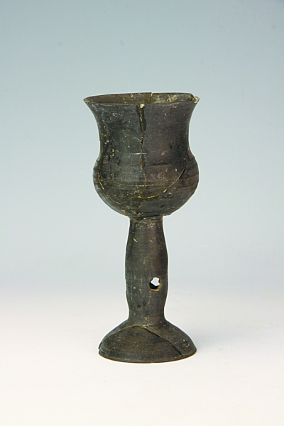 作为黑陶家族的一员,我浑身上下都是由细泥制作而成,每一个细胞都透着细腻与光滑,比夹砂黑陶和泥质黑陶不知道精致、典雅了多少倍,所以一出场就是带着光环的!而且,我们蛋壳陶成员的身材也都是极好的,都属于高柄杯,体态是清一色修长轻盈、高雅秀丽。听说,现在这种体型依然备受追捧,比如有一种玻璃杯与我们体型相似,是专门用来喝红酒的,而且是时尚、品味与浪漫的象征。