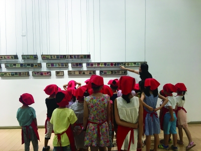 夏天的颜色——水彩体验课堂上,老师为孩子们导览水彩作品
