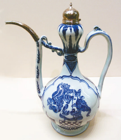 英国维多利亚与艾伯特博物馆藏明嘉靖时期《青花葡萄牙盾形徽章纹执壶》。
